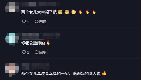 看见张恒晒出的全家福,网友们纷纷在评论区留言。有的网友说,拥有两个可爱的女儿太幸福了,还有的说她老公太幸福。不得不说,确实是这样,老婆长得漂亮,两个女儿又这么好看,真的很幸福。