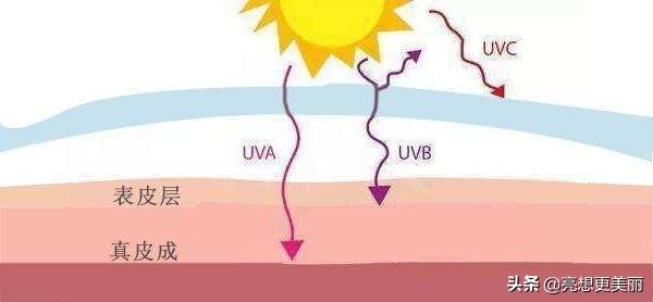 王者UVA:波长就更长了(400~320),可穿透臭氧层、穿透玻璃,直达皮肤深处真皮层,破坏弹性纤维和胶原蛋白纤维,使皮肤晒黑、晒老!