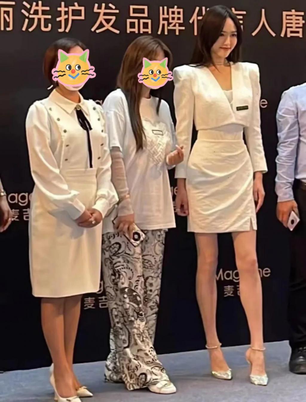 身材高挑的女明星在人群中会显得更高挑,比如唐嫣。最近她在四川出席活动,172cm 的身高再穿上高跟鞋,比跟她合照的女生都要高大半个头,在路人的镜头下更显高挑纤瘦。