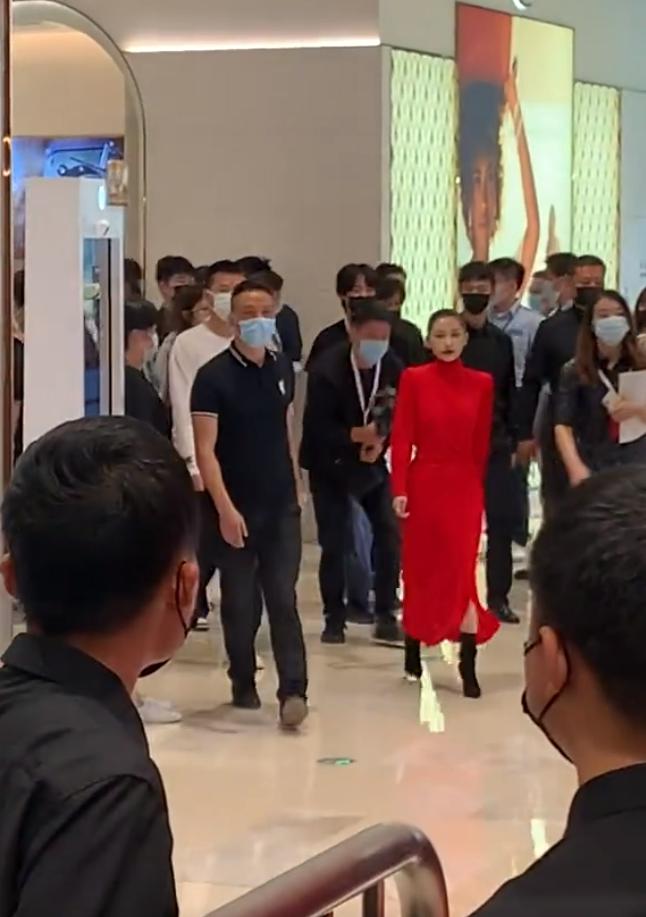 前段时间王子文现身武汉的商场,穿了一条耀眼的红裙,没想到穿上高跟鞋之后的她在人群中还是那么娇小。