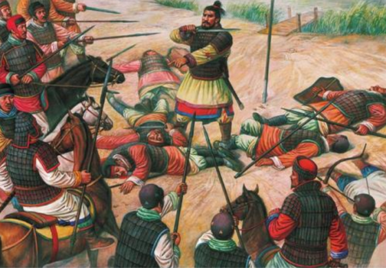 项羽和100多人向左边跑去。他们越跑越不对劲。后来,他们看到前面有一片沼泽,无路可逃。项羽意识到自己被骗了,所以他迅速调转马头,绕过沼泽。汉军已经追上了他。