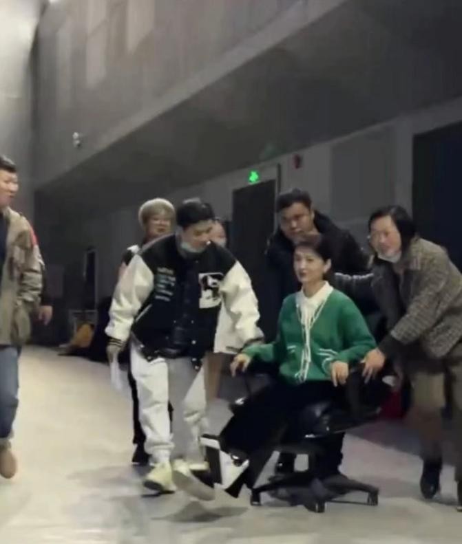 我们看到的是七八个工作人员的搀扶,而看不到的是还有二三十个工作人员已经为这场栏目的直播准备了很久。