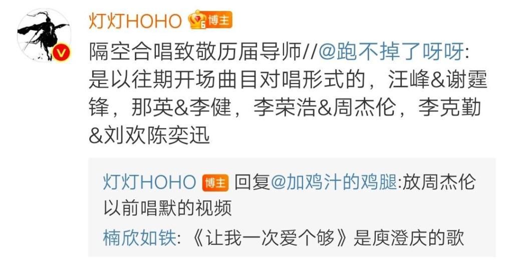 谢霆锋庾澄庆俩人还不会到现场,而是在现场放俩人之前对唱的视频,从而达到隔空对唱的效果。