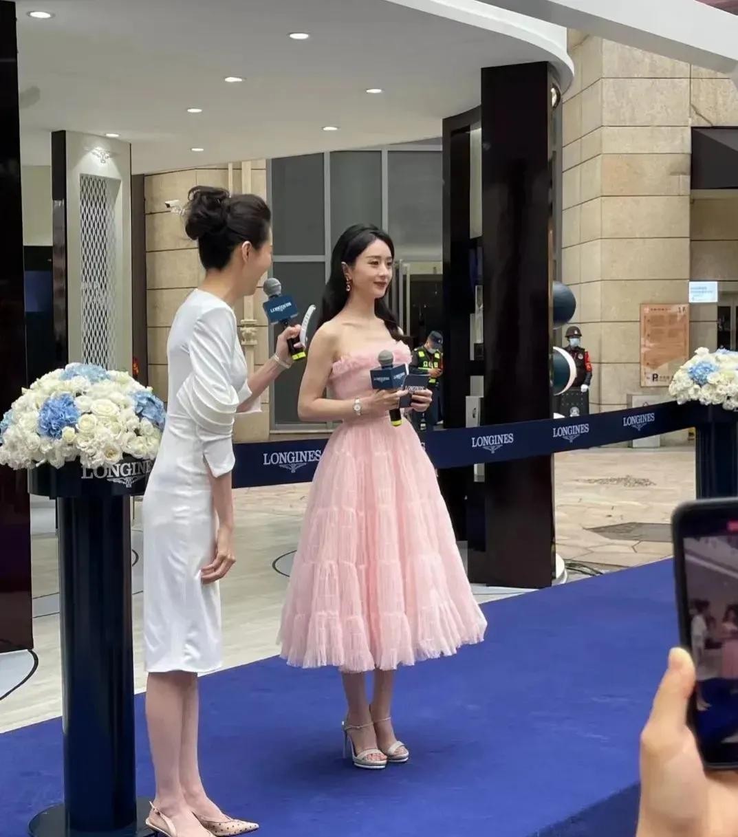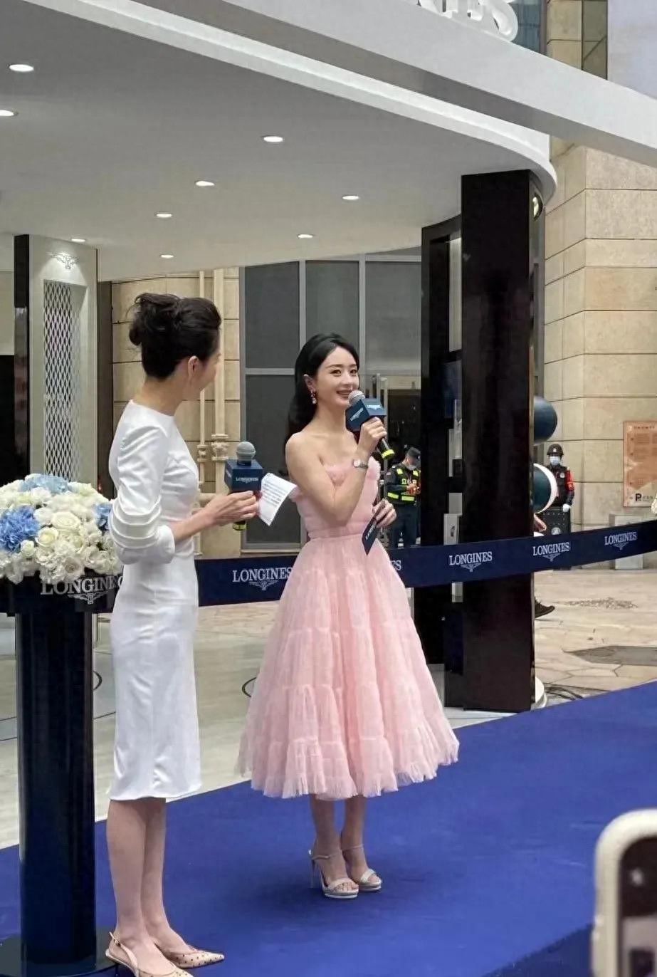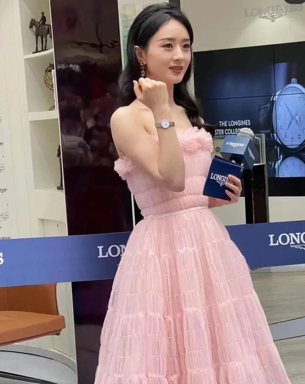 赵丽颖穿粉色裙子出席某商场活动,在未Ps曝光下,美成了小姑娘