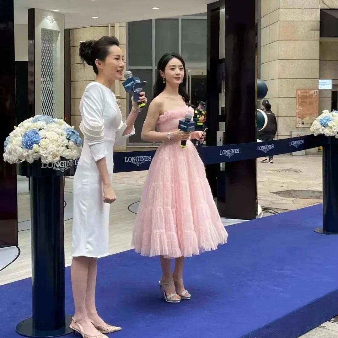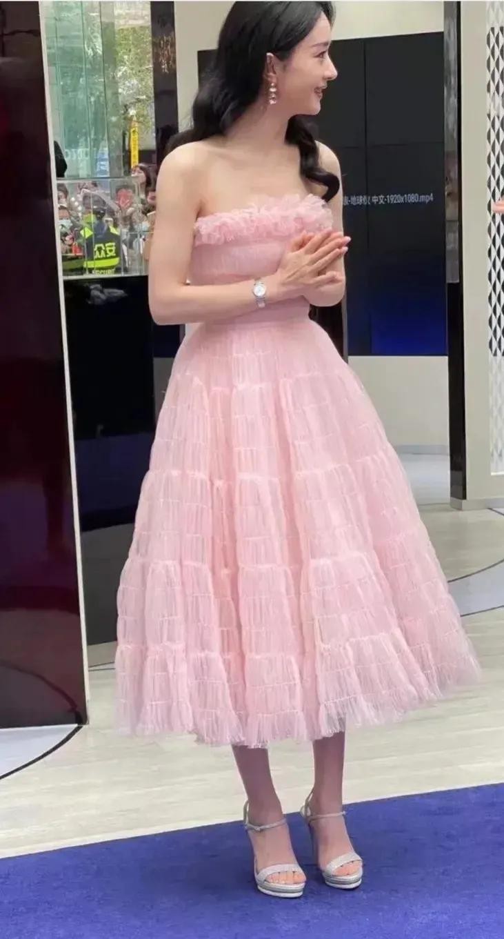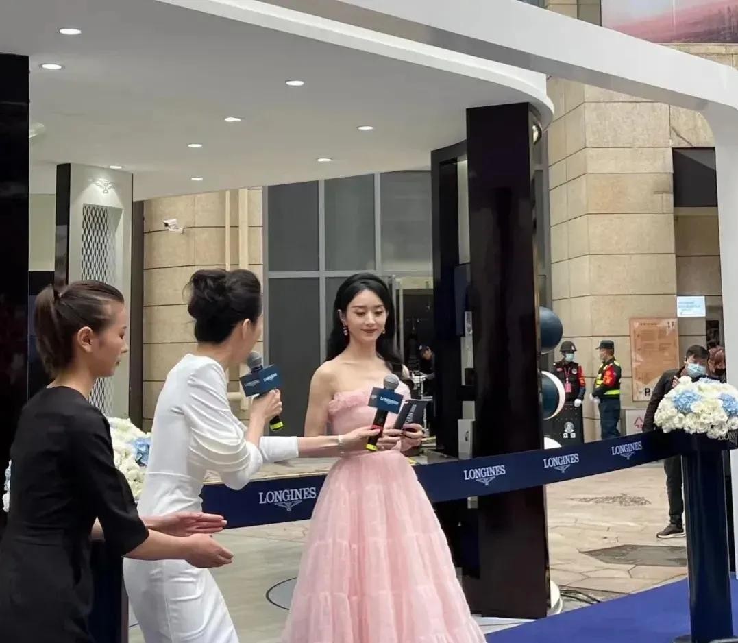 赵丽颖穿粉色裙子出席某商场活动,在未Ps曝光下,美成了小姑娘