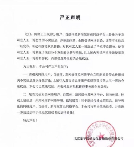 不过,当时公司很快站出来发声明辟谣,否认“恋情”一说。