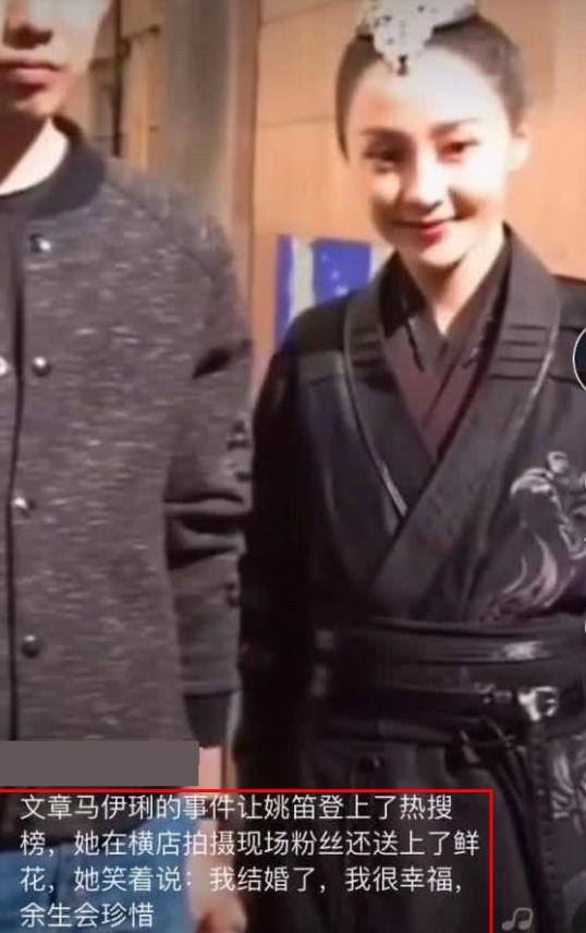 网友晒出了一个关于姚笛的短视频,并且称姚笛正在横店拍戏,还笑着说“我结婚了,我很幸福,余生会珍惜”。从网友晒出的视频中看,很明显姚笛是在拍摄一部古装戏,而且动态中姚笛一言未发。