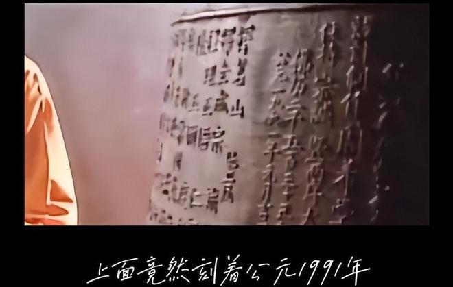 还有这个金山寺的大钟,仔细看上边写的字的话,就会发现有一个特别大的 1991 年。