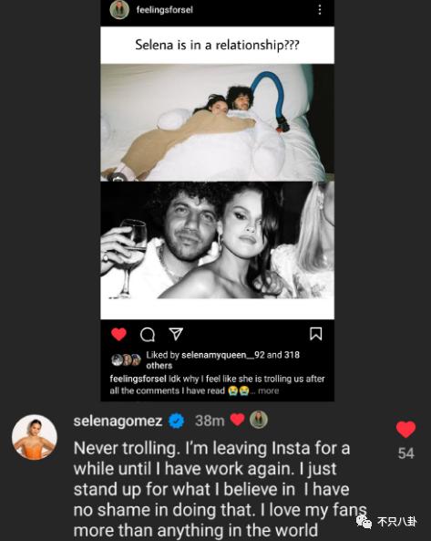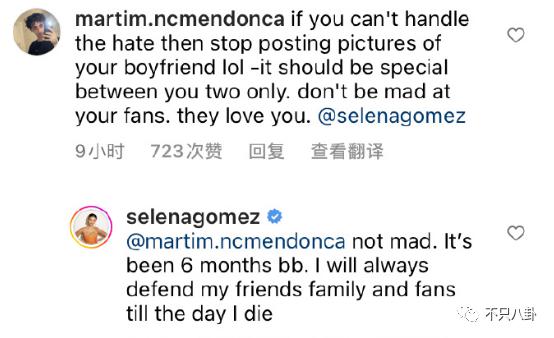 也有人来劝赛琳娜,如果无法承受这些仇恨言论就不要上传你和男友的照片了,这是你们的专属。不要生粉丝的气,粉丝很爱你。