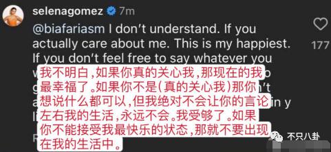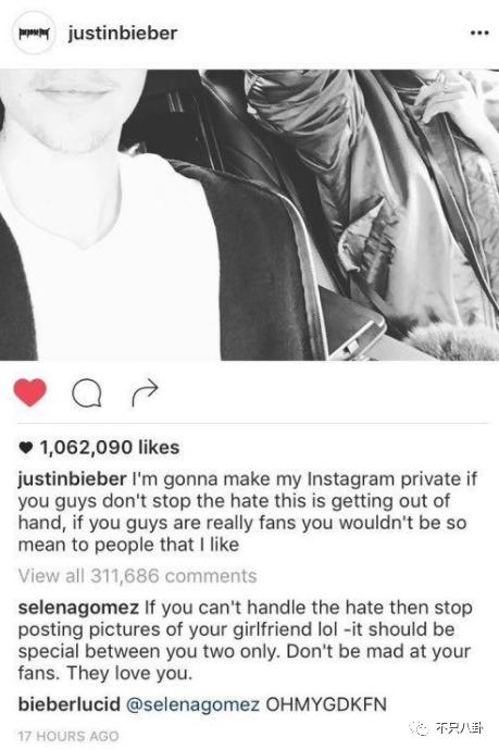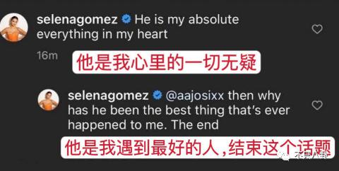 ps. 据说网友劝架的话是当初赛琳娜劝比伯的话,实质上也是反讽,可赛琳娜还是认真回答,难道是忘记自己说过