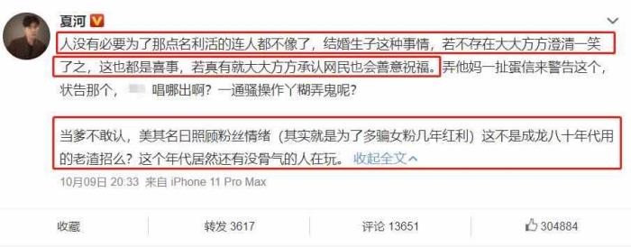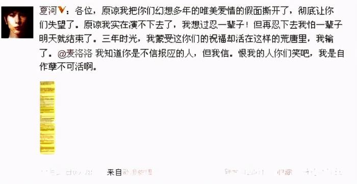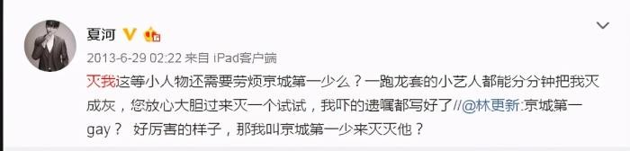 想想看,你们会有高以翔刚刚过世时,粉丝们的怒火旺盛吗?夏河当时痛斥粉丝,打着惋惜的名义吃人血馒头,还说二台固然有错但是人都不在了。想想看两边冲突的惨烈程度,结果夏河并无影响。