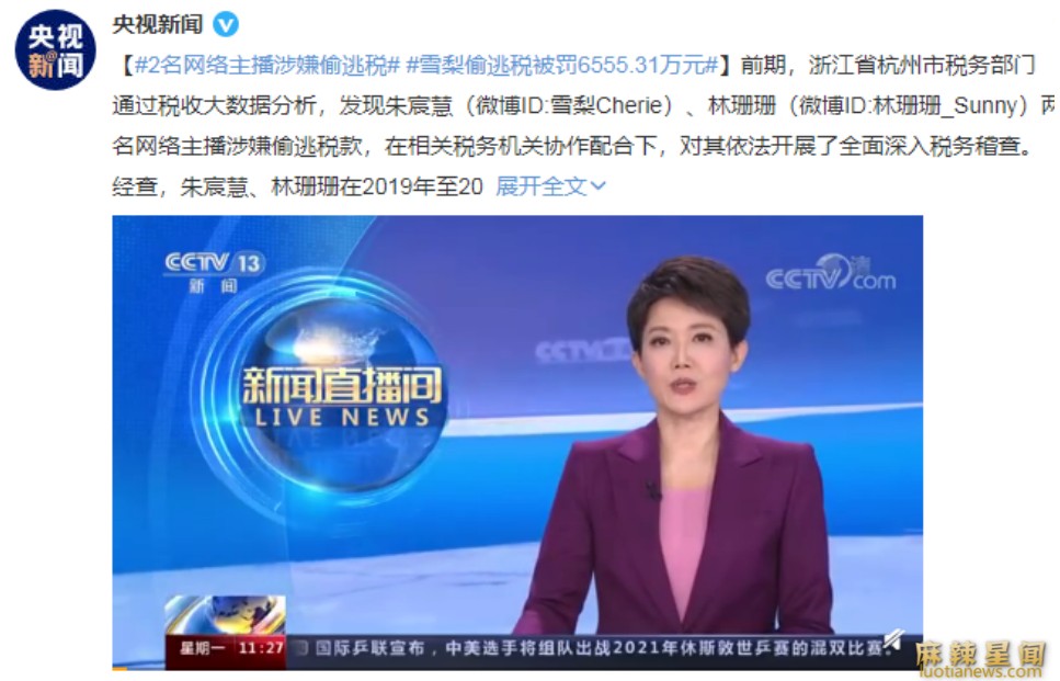 雪梨偷逃税被处罚 年收入被揭露人设一落千丈