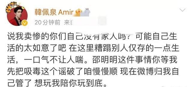 本来这些都算得上是陈年旧事了,但是今天网上突然传出韩佩泉 xd 的传闻,韩佩泉在澄清时直接点了邵明明的大名,称辟谣后要慢慢顺关于邵明明的事。