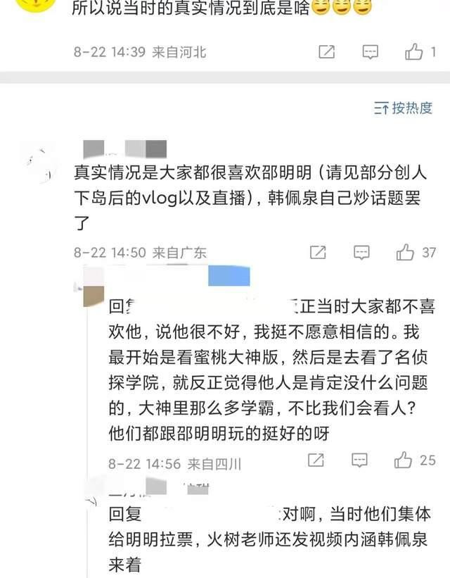 不过后来有网友替邵明明说话,称当时的真实情况是大家都很喜欢邵明明,韩佩泉是为了炒话题才故意处处针对他。