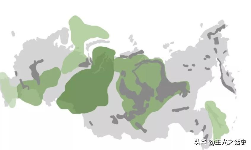 以俄罗斯为例,黑色的是煤炭分布,绿色的是石油分布