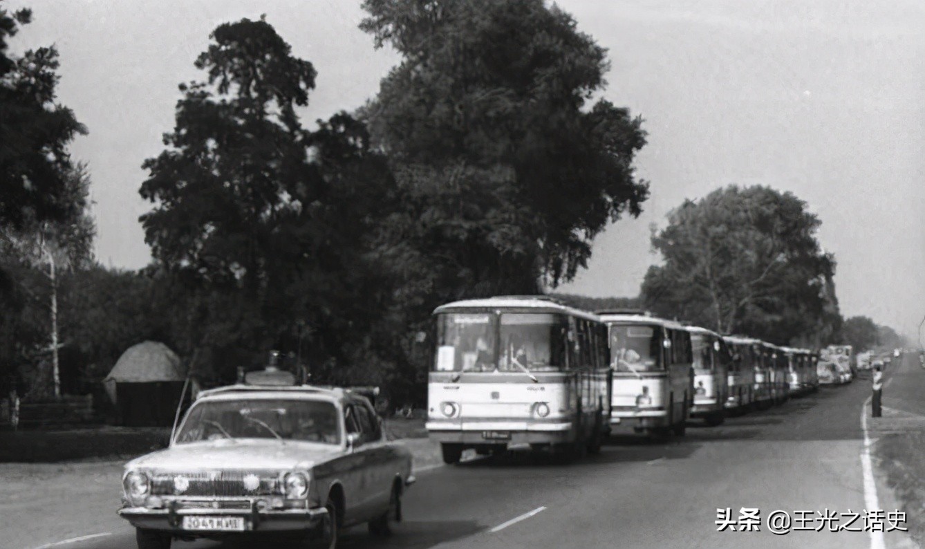 没有任何防护装备的苏联士兵在切尔诺贝利设立禁止入内的路障