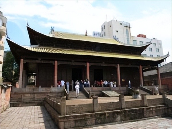 文庙始建于西晋,距今有1700多年的历史,据史料记载,陶侃、姜夔、洪迈等人都曾在此求学。至今保存完好的文庙(大成殿),即孔庙——是中国古代礼制建筑之一,为历代祭祀孔子的场所。饶州府文庙几经修缮。明正统元年,淮靖王朱瞻奥从韶州迁到鄱阳。清顺治七年(公元1650年),饶州知府翟凤翥在永寿宫废址上改学宫,即饶州府文庙。内建有明念经堂、大成殿、教谕署、崇圣祠等建筑。1937年日军内侵,文庙大部分建筑被炸毁,仅存大成殿。该殿为抬梁式殿堂结构,面宽五间,进深三间,占地面积478平方米,高14米,祭坛前有保留下来的明淮王府云龙纹辇道,殿内设如意斗拱藻井,内外额枋皆扶金雕刻。2006年,江西省人民政府列其为省级文物保护单位。