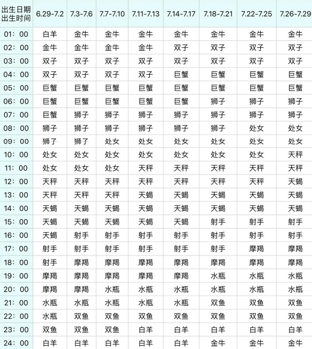 如你的出生时间是7月13上午十一点出生,则上升为天秤座。
