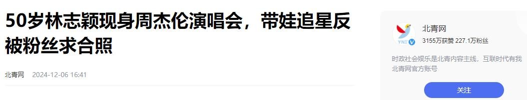北青网:50岁林志颖现身周杰伦演唱会,带娃追星反被粉丝求合照
