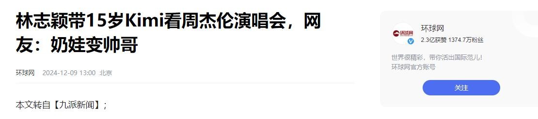 环球网:林志颖带15岁Kimi看周杰伦演唱会,网友:奶娃变帅哥