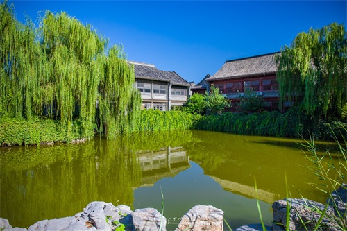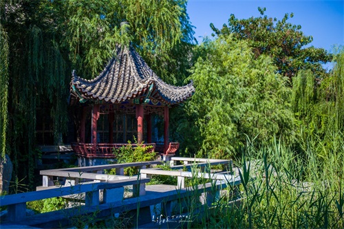 在楼南大街与火神庙街交叉口西南处,有小桥流水、有回转亭廊、更有一汪池水,水边是垂柳和竹林,宛若这古城中一处僻静之地。氛围实属幽静,想必也是鲜少人到此吧。