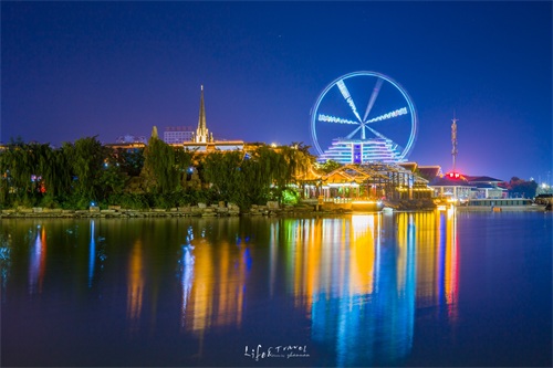 南城门外是与南水桥相连,走过桥便是一处“连岛”,可提供休闲游玩、游船、餐饮等等一系列的设施,再过南关街,便可到达聊城著名的“摩天轮”,当然这摩天轮的夜景才最治愈,一定不要错过哟。