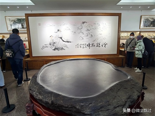 荣宝斋坐落在琉璃厂西街,今天只卖笔墨纸砚,没有展览。进店的人排起了队,一进店门就是一方巨砚。