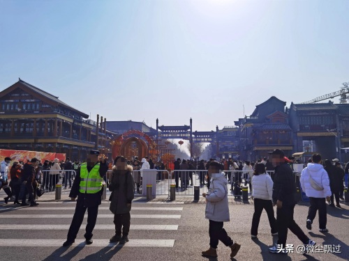 公交出行,一到和平门就见警察、辅警维持秩序,引导逛庙会的人群走路的西侧,由二环向南的路交通管制了,只有公交车通行,二环边上就见逛庙会的人群了。