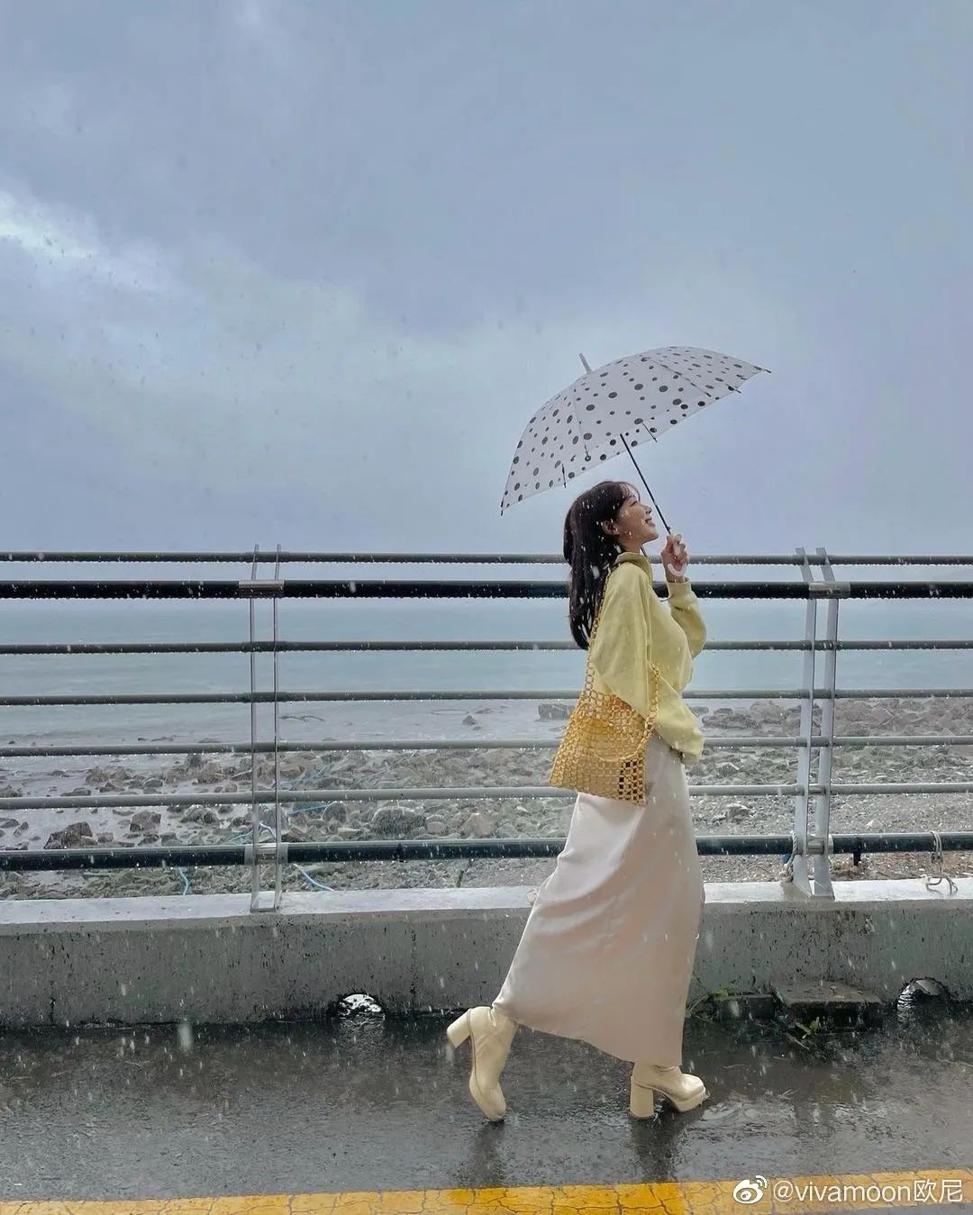 如果你穿着连衣裙,拍一些侧身照就会非常有氛围感。因为裙子可以随风飘动啊,抓拍到位的话,会为镜头里的你增添更多的浪漫气质。