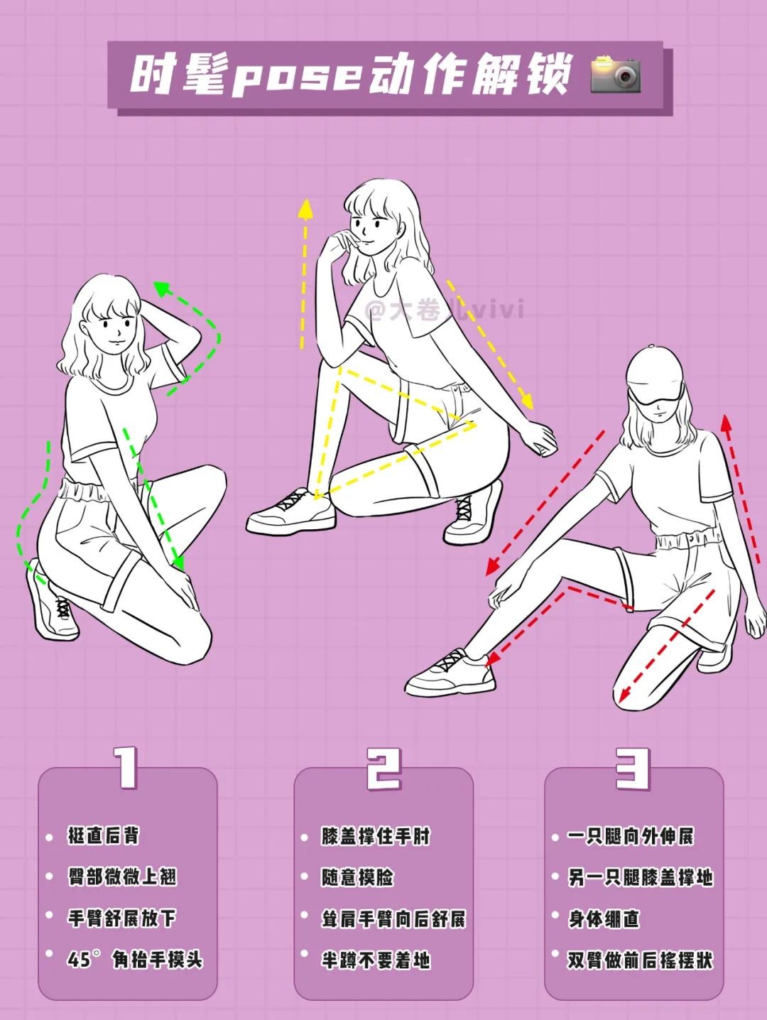 总之,拍照时摆pose还真不是说来就来的简单,尤其对于那种一看镜头就六神无主的女生来说,提前学会动作招数很重要,拍照时就能高效完成各种美美的瞬间啦!