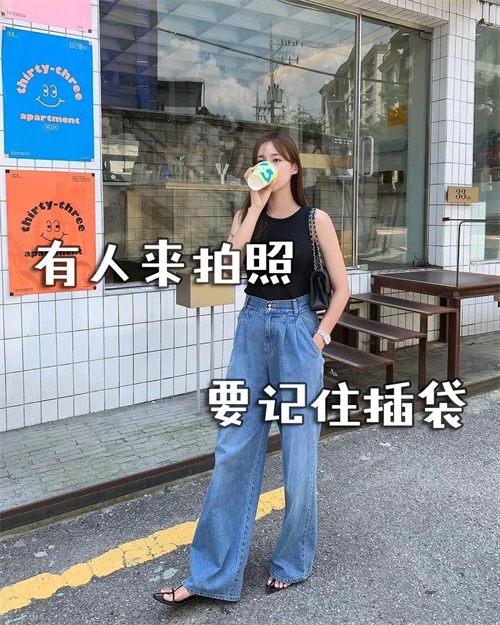 站姿能玩出的花样是非常多的,总之不要双腿并列像木头一样呆呆立着就行。可以通过叉腰、插兜、单手摸头等大动作来释放身体的曲线美。