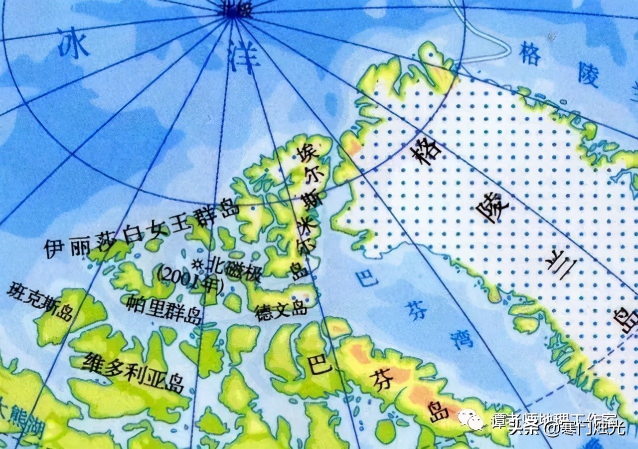 埃尔斯米尔岛宽480千米,长804千米,东南部是加拿大地盾的延续,地形为古老结晶岩构成的山原,北部属古生代褶皱带,褶皱山地以古生代沉积岩为主,地形崎岖,群山耸立,岛上的巴比尤峰海拔2604米,是北极群岛最高点,该岛北部是加拿大领土的最北端。
