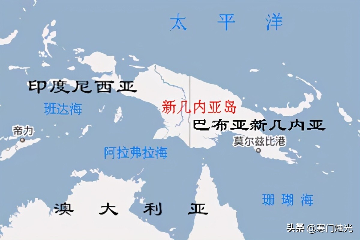 新几内亚岛为两个国家共有,在东经141°以东及新不列颠、新爱尔兰等岛屿为独立国家巴布亚新几内亚,141°以西及沿海岛屿为印度尼西亚的伊里安查亚省。