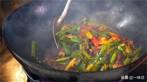 我们加入大蒜苗头 和小米辣一起炒香!