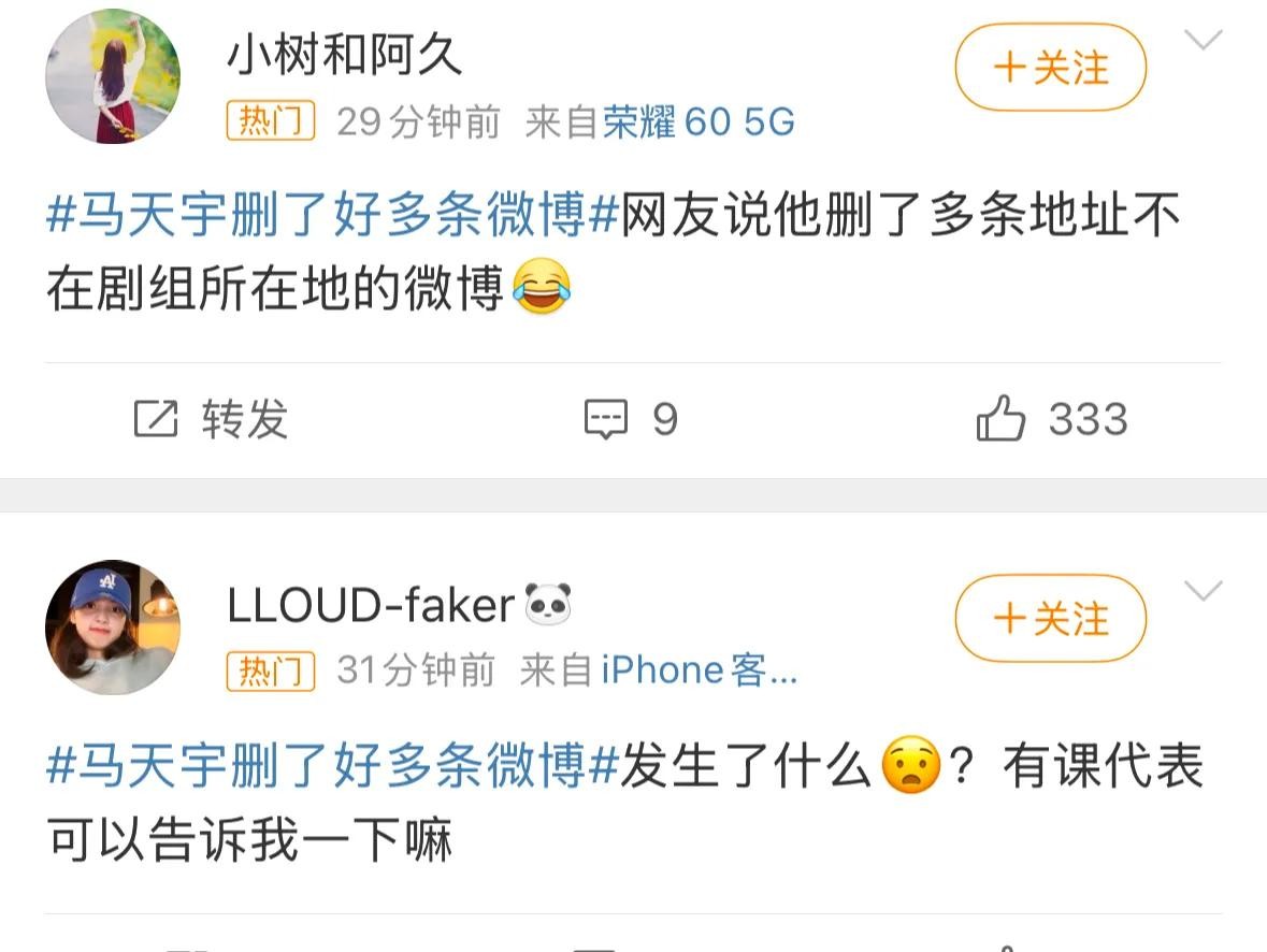 在被发现猫腻之后的马天宇,他第一时间删除了很多微博,当然了,也是被细心的网友发现了!