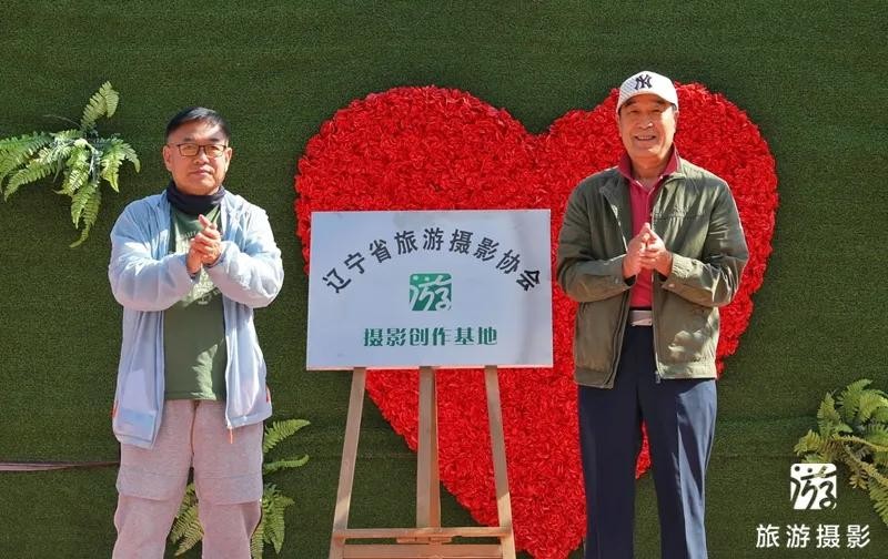 辽宁省旅游摄影协会秘书长吴乾隆与沈阳花果山神秘谷景区董事长李军为摄影创作基地景区揭牌