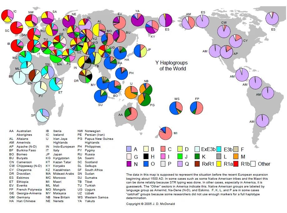 美国人研究出的世界人种基因图谱(Y染色体)表明