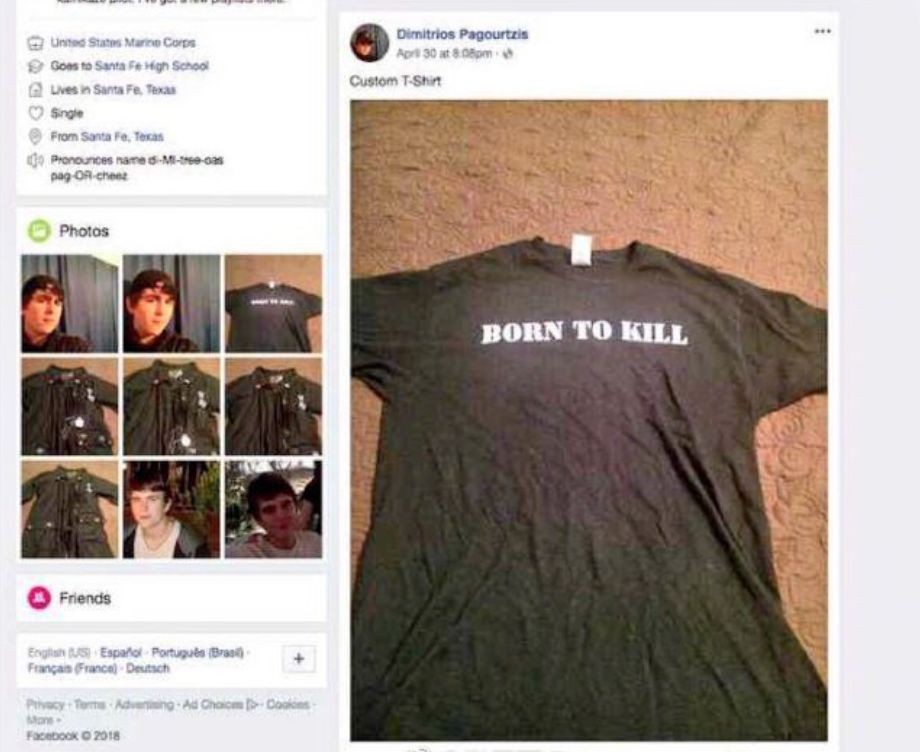 Dimitrios Pagourtzis先前在社交媒体页上放的照片也被翻出,其中包含一件写着“生来就是为了杀人”的T恤、以及一件有纳粹符号的军外套。