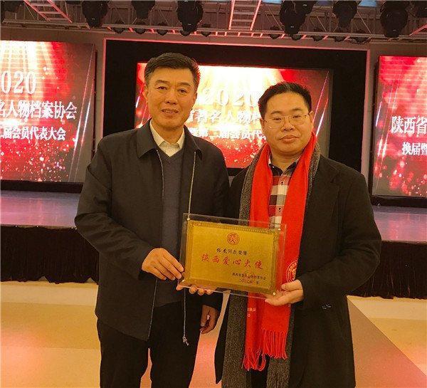 政协陕西省第十一届副主席千军昌为西部新闻网总编辑张龙颁发陕西爱心大使荣誉奖牌