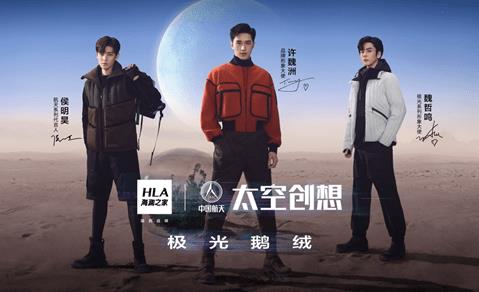 其实许魏洲成为代言人现在回想起来,应该在去年就有想法了,2025年海澜之家来了场关于宇宙的终极浪漫。海澜之家和中国资深本土设计师Rico Lee打造的航空联名,融入了大量的航天元素与精神图腾,将科技面料和服装工衣杂糅,服饰之中隐约可见浩瀚天际,缥缈星辰。其中分别邀请了侯明昊,魏哲鸣,许魏洲惊艳亮相。
