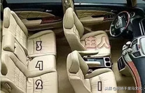 小轿车1号座位在司机的右后边,2号座位在司机的正后边,3号座位在司机的旁边。(如果后排乘坐三人,则3号座位在后排的中间)。中轿主座在司机后边的第一排,1号座位在临窗的位置。如果由主人亲自驾驶,以驾驶座右侧为首位,后排右侧次之,左侧再次之,而后排中间座为末席,前排中间座则不宜再安排客人。主人夫妇驾车时,则主人夫妇坐前座,客人夫妇坐后座,如果主人夫妇搭载友人夫妇的车,则应邀友人坐前座,友人之妇坐后座,或让友人夫妇都坐前座。主人亲自驾车,坐客只有一人,应坐在主人旁边。若同坐多人,中途坐前座的客人下车后,在后面坐的客人应改坐前座,此项礼节最易疏忽。旅行车接送客人:旅行车以司机座后第一排,即前排为尊,后排依次为小。其座位的尊卑,依每排右侧往左侧递减。
