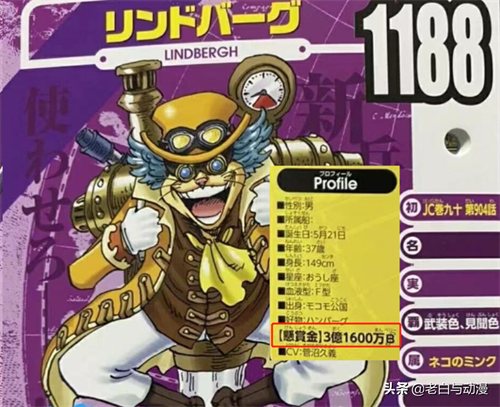 其次是南区军队长【林德伯格】,赏金为3亿1600万贝利,林德伯格是一位科学家,使用的都是自己制作的科学武器,之前和萨博一起前往玛丽乔亚,目前生死不明!
