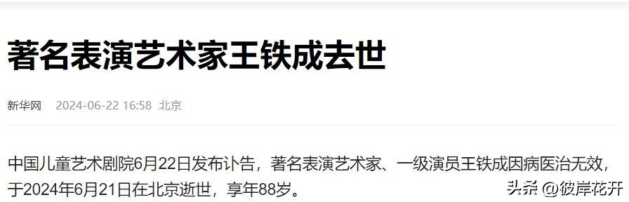 不过,最让人震惊的还是王铁成老师的离世。