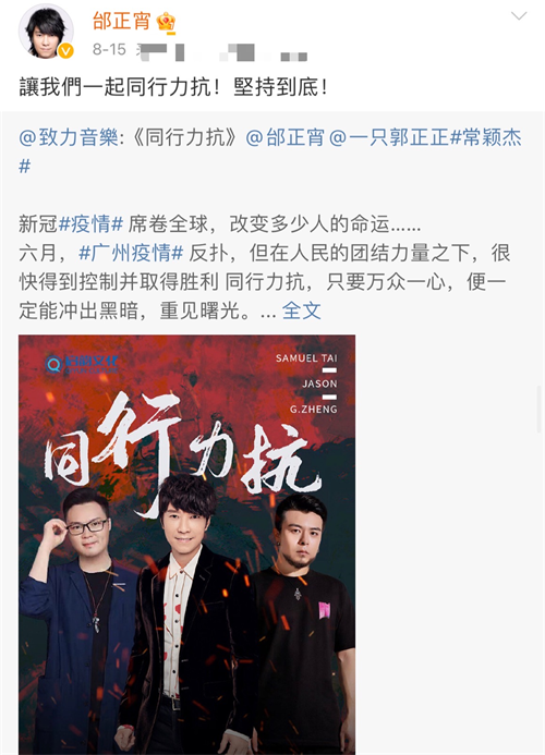 不久前他还录制歌曲《同行力抗》,以此鼓励大家面对疫情携手同行,坚持到底,共创美好的明天。