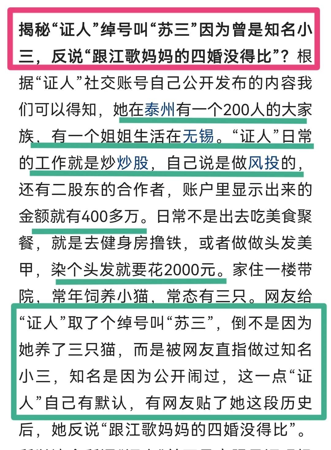 还有人称,韩素疑似有不光彩的过去,她对此也没有进行否认。她还表示,自己的故事和江歌母亲的四婚没得比。