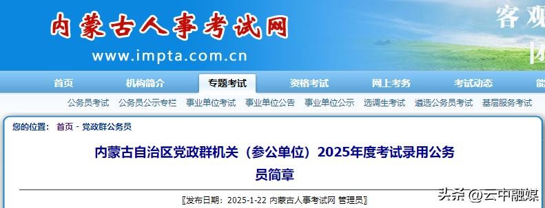 内蒙古2025年度公务员公告发布