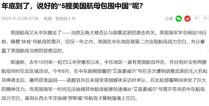 那个被胡塞武装追着屁股打的艾森豪威尔号航母就遭遇了相当严重的超期部署。艾森豪威尔号是美国为了应对中东局势而部署的,原本只是部署6个月,结果由于伊朗问题和中东反恐等需求,超期部署到8-9个月,美国当时媒体有报道,称士兵们要时刻防备胡塞的袭击,要进行作战任务,战机的出动频率也比训练时更高,长期的高压环境导致士兵们的精神紧张,部分舰艇武器系统也因为长时间使用而出现了跟高的故障率。高压环境下的紧张状态,就可能导致士兵的误判误操作。