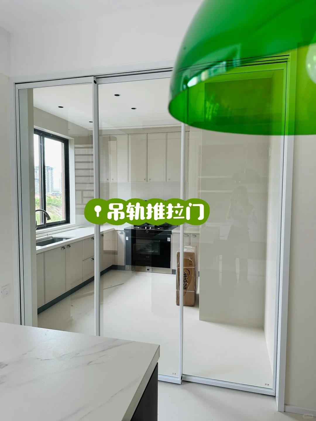 以前的推拉门都是需要在地面安装地轨的,但就是这个地方特别难清洁,因为厨房本身就是油烟产生比较多的地方,时间久了,地轨上面全是油垢。
