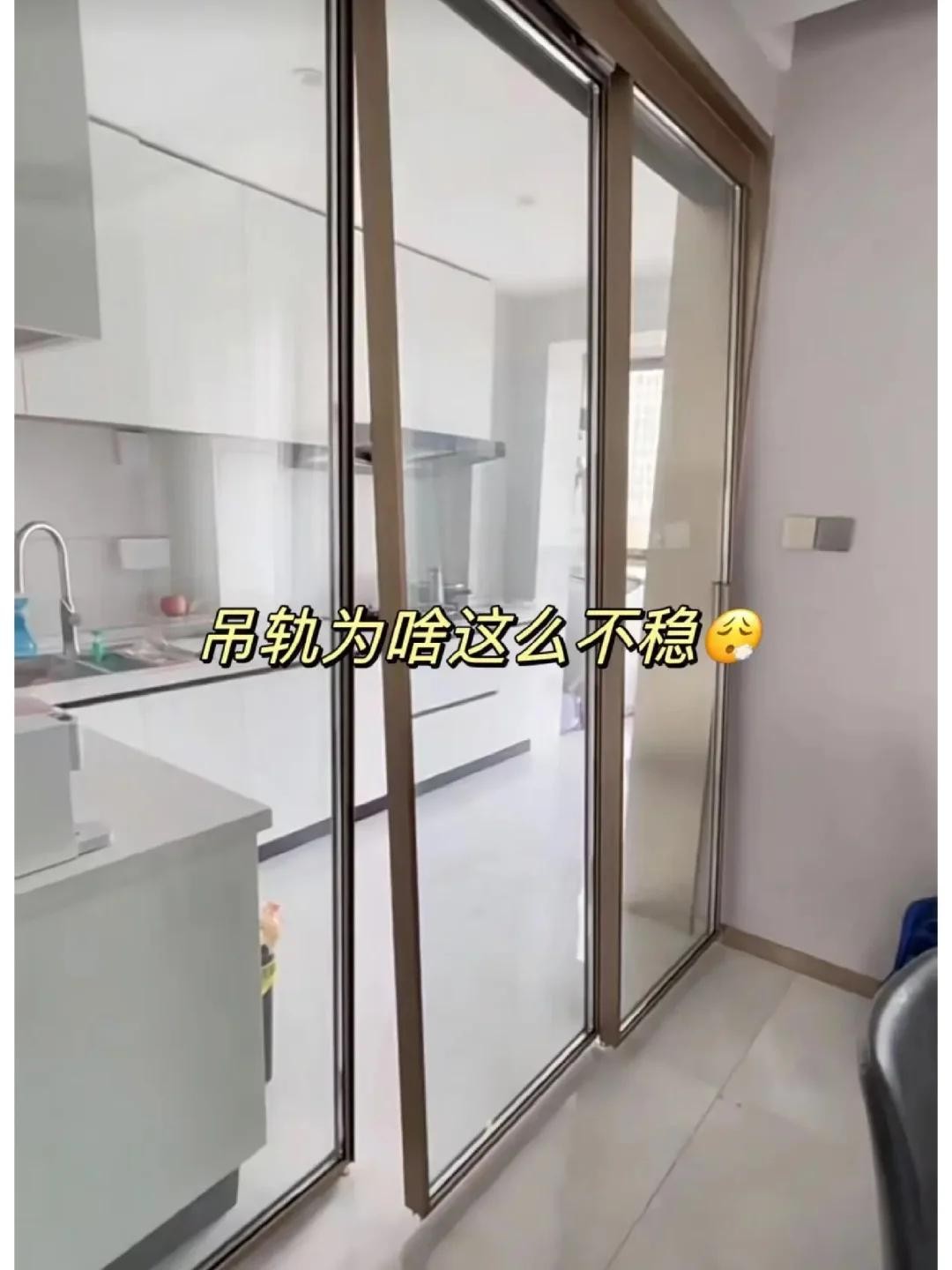 因为地轨太难清洁了,所以后来又出现了吊轨,不少人选择安装吊轨的推拉门,但实际上虽然减少了地面轨道难清洁的问题,但是吊轨更加危险,