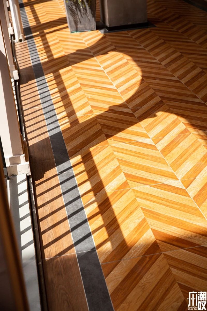 走廊位置很有度假的感觉,来一波色彩冲击,阳光洒在地面,心情一下子就好起来。